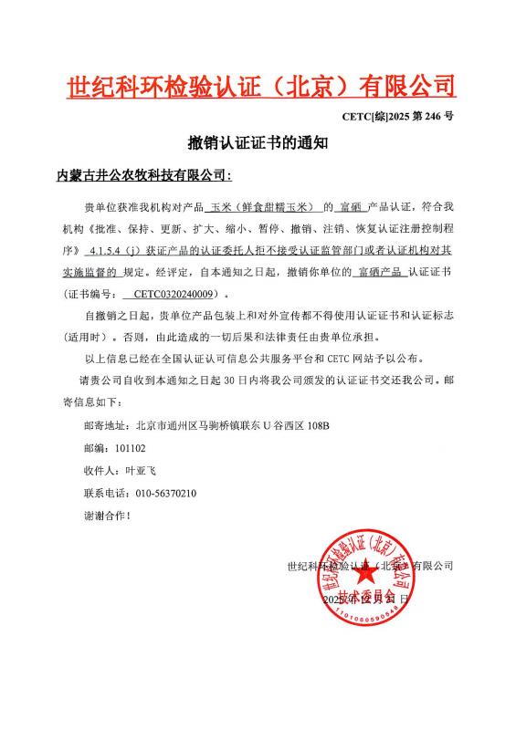 撤销认证证书的通知