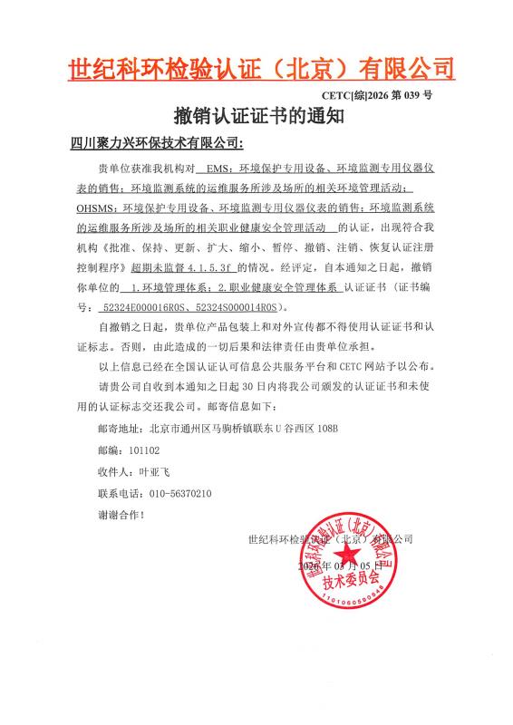 撤销认证证书的通知