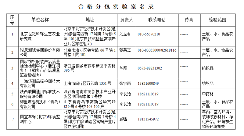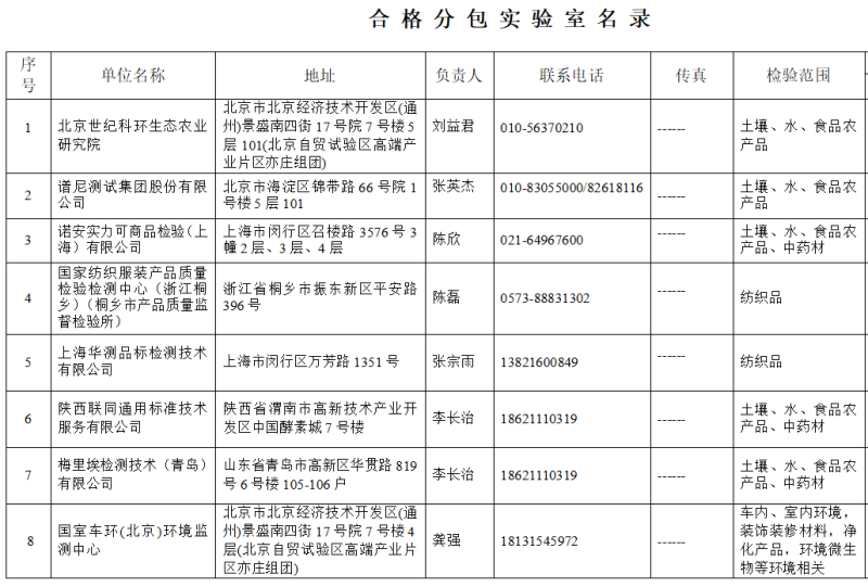 合格分包实验室名录